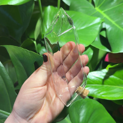 Water From a Crystal is a simple, slow-release plant watering tool designed to help keep houseplants hydrated with less frequent watering. Made from hand-blown glass with a natural cork stopper, it releases water gradually into the soil once inserted into a plant pot.